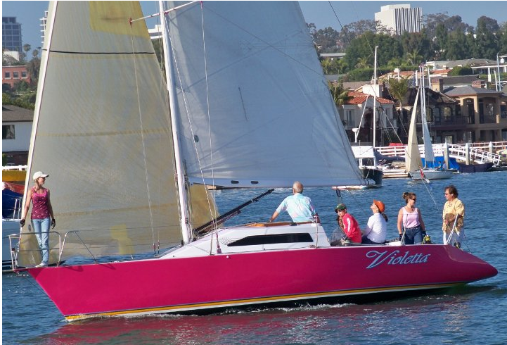 The yacht continues to sail and race in Newport on the US West Coast under her new name Violetta. Her original purple colour scheme has now given way to vivid pink, but she retains the distinctive bowsprit.